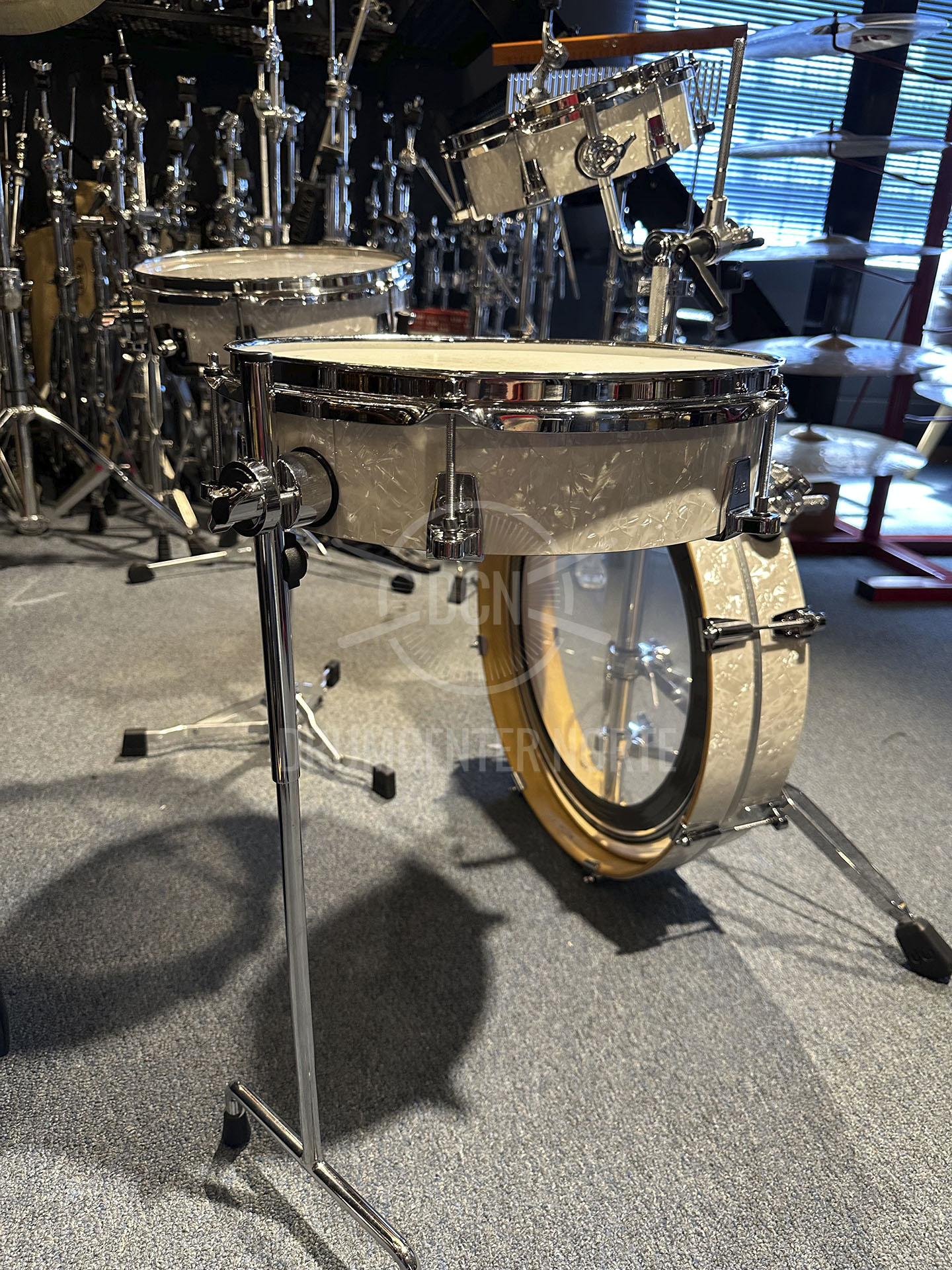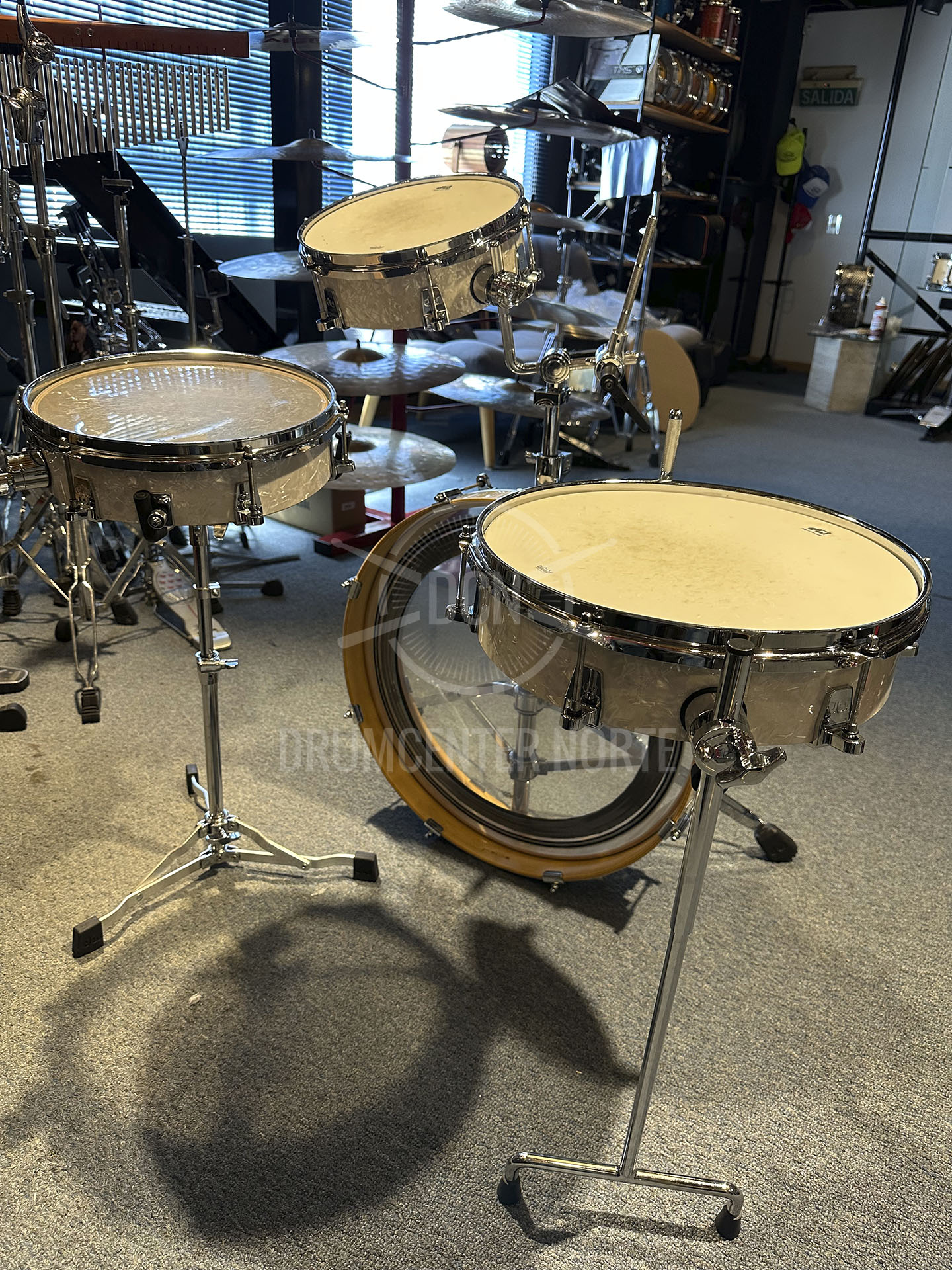 Medidas: Bombo 2o»x 3″, Toms 10″x 3″ y 13″x 3″. Tambor / Tom 12″x3″.