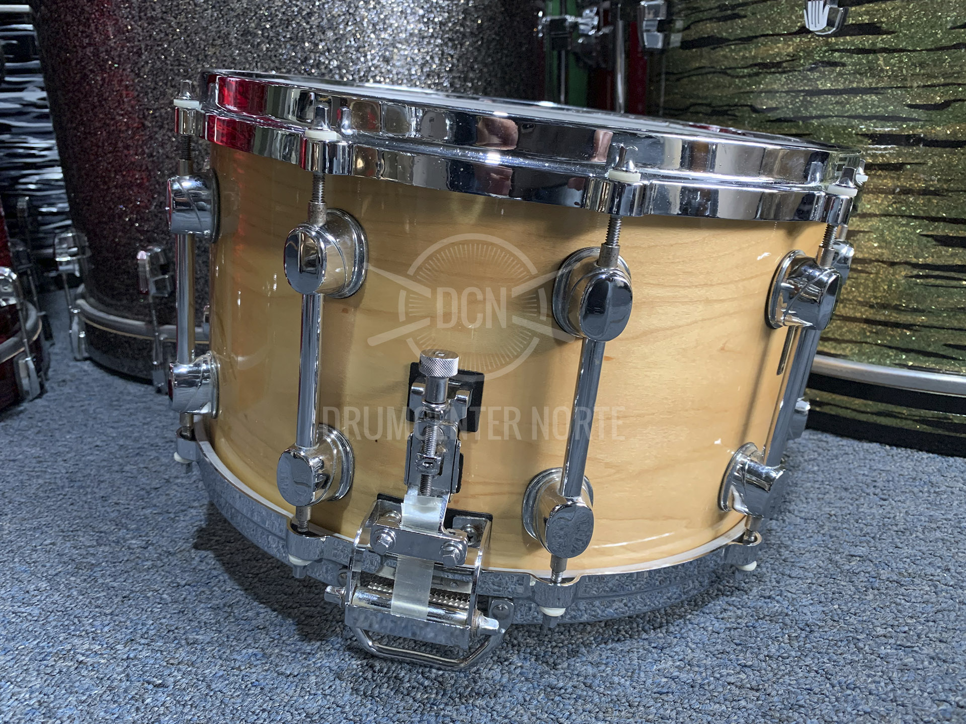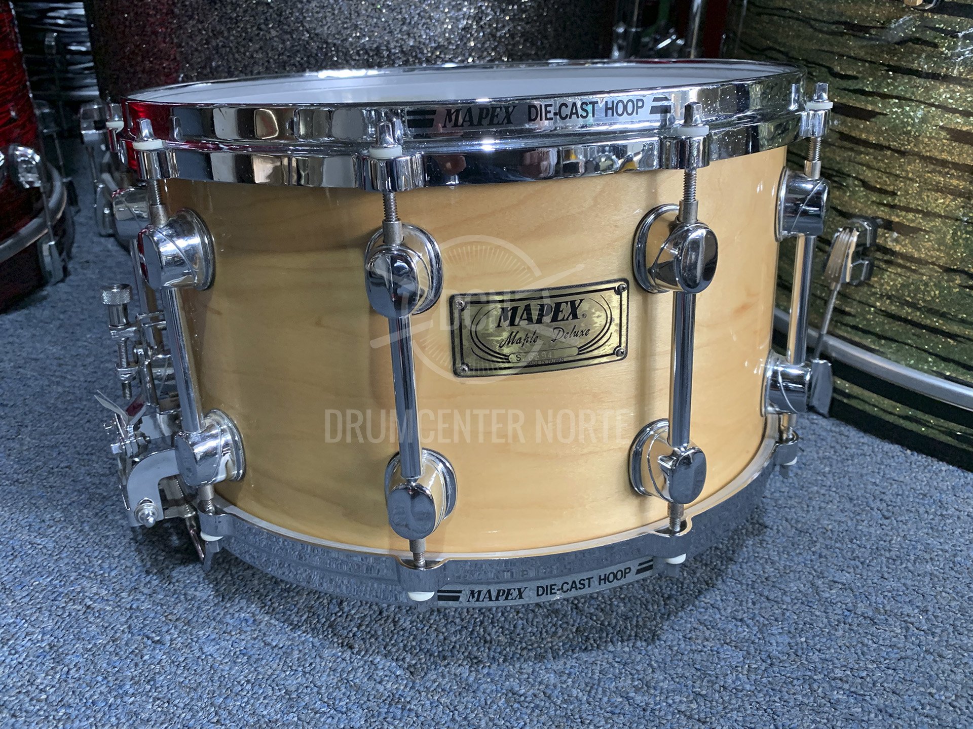 TAMBOR MAPEX MAPLE DELUXE SERIES. 14″ X 8″. CASCO DE MAPLE «PREMIUM» AMERICANO. 10 TORRES «TUBE LUGS». AROS DIE CAST. DOBLE AJUSTE DE BORDONA. SISTEMA SUPERSENITIVO. CASCO LAQUEADO NATURAL. EXCELENTE ESTADO.