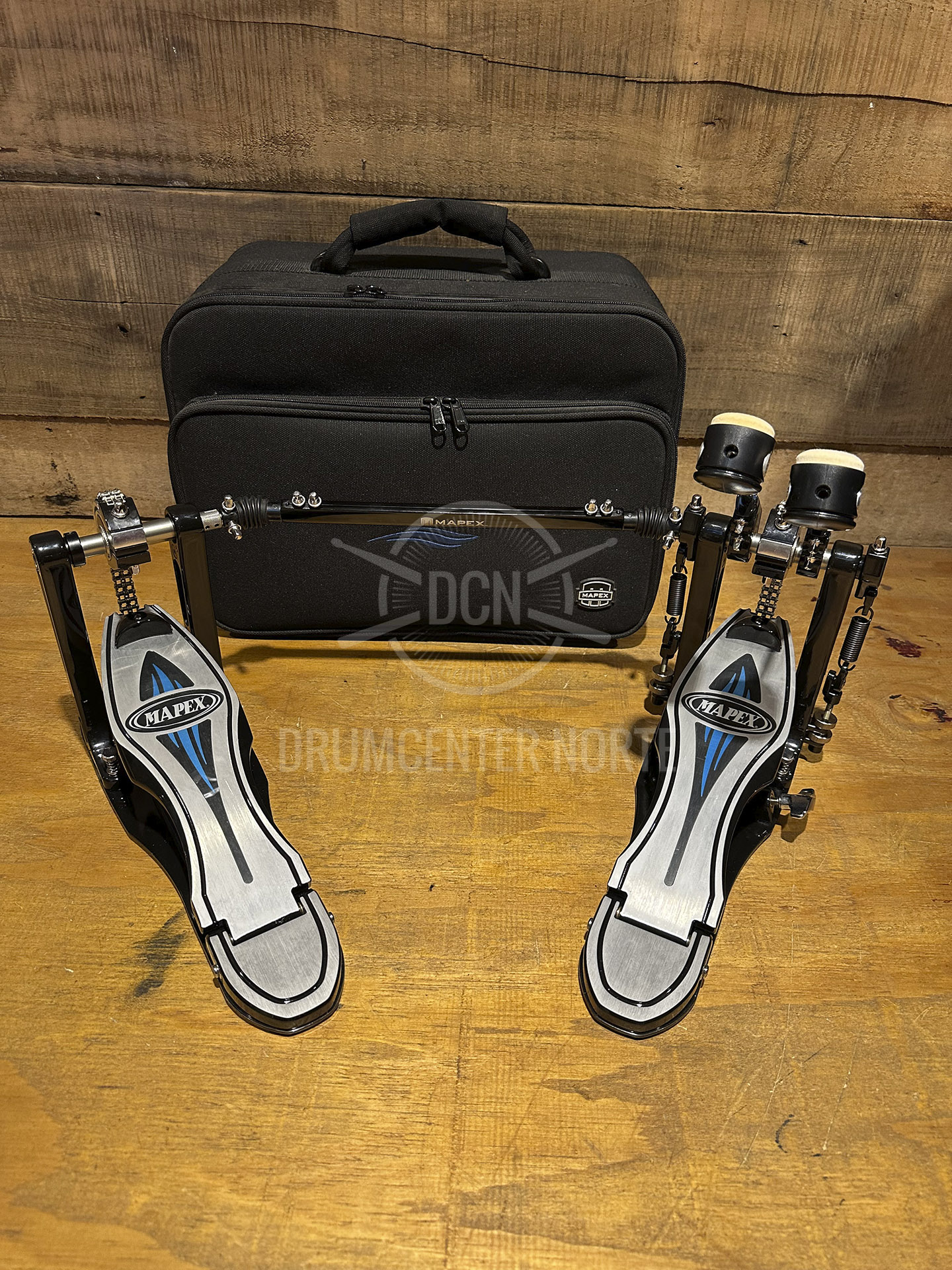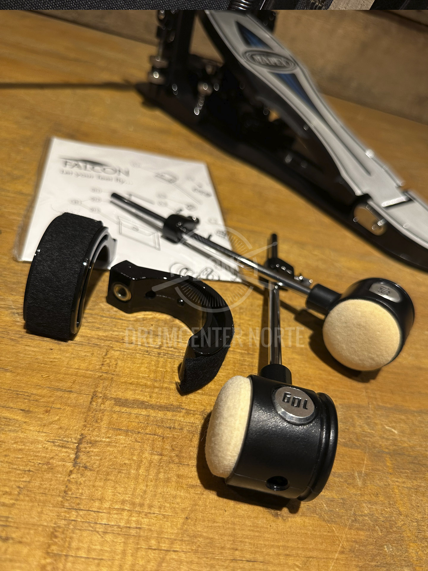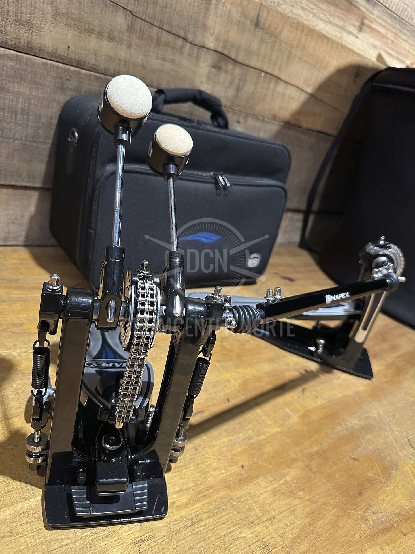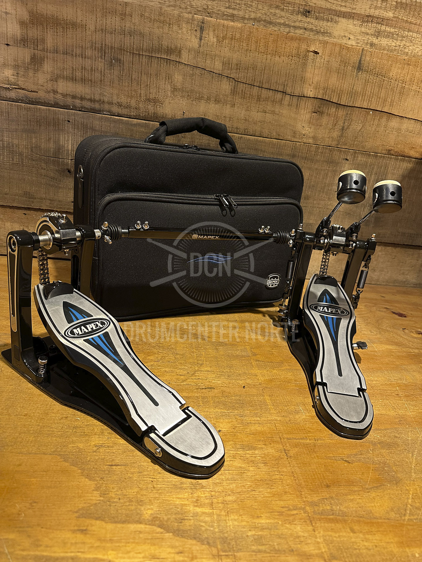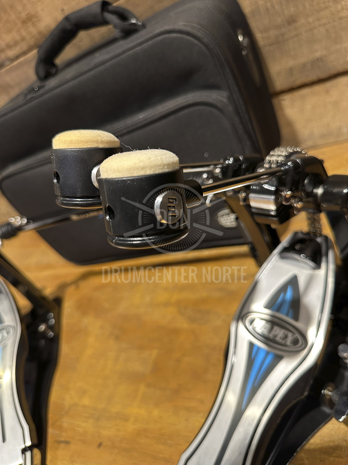 Mapex PF1000TW. Pedal doble. Con Plataforma. Doble cadena. Mazo Doble cara con pesa intercambiable.