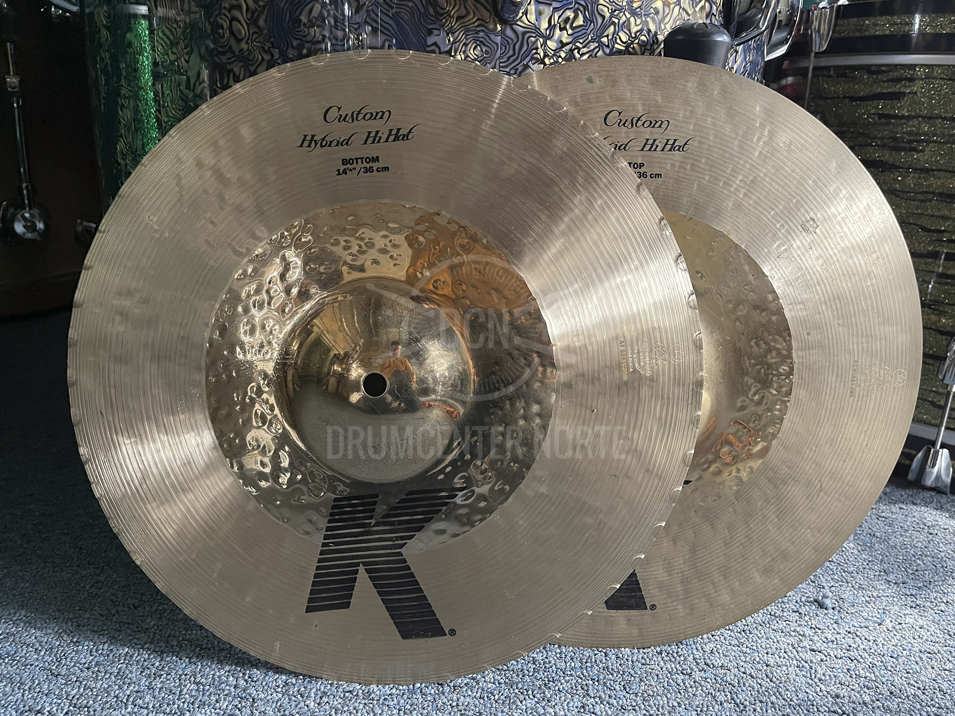 ZILDJIAN K CUSTOM HYBRID HI HATS 14″. ALEACIÓN B20. SUPERFICIE MARTILLADA CON DOBLE TEXTURA. IMPECABLE ESTADO